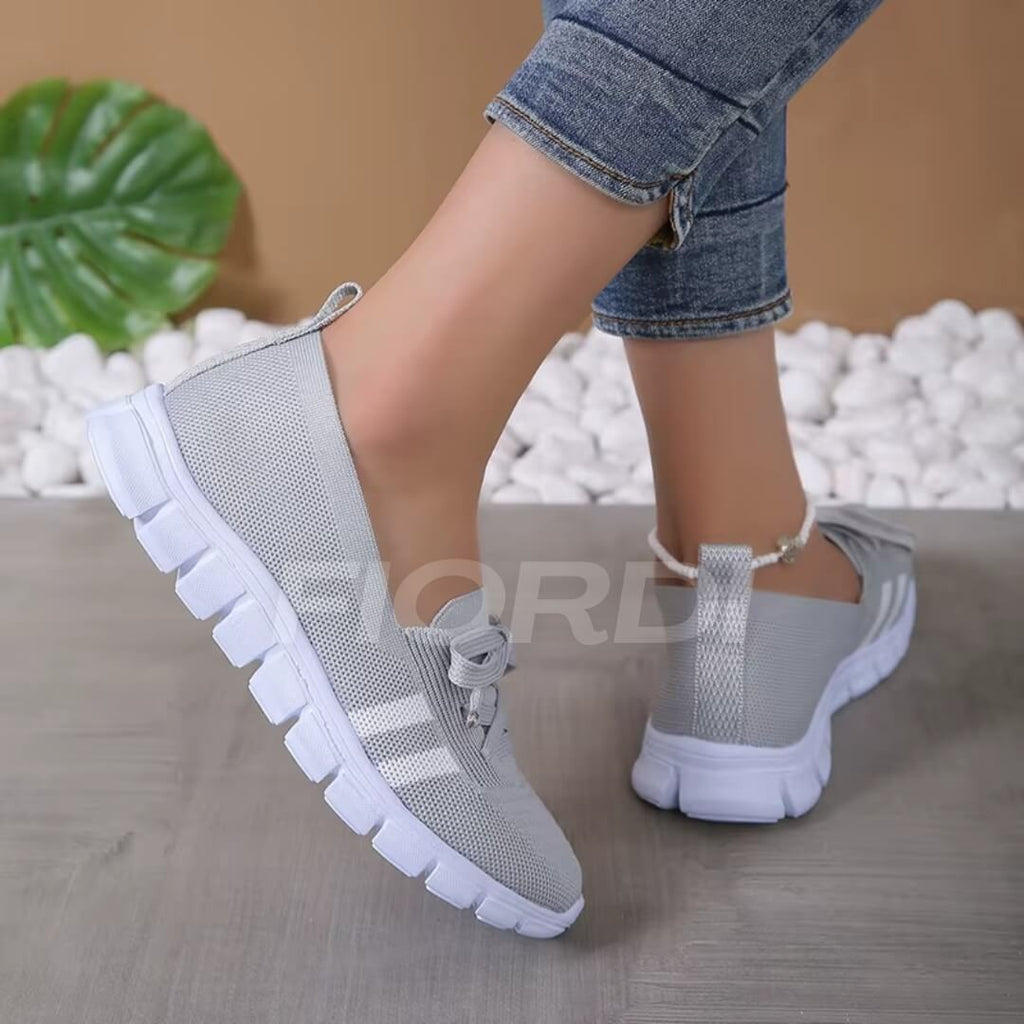 Com um design anatômico que se adapta perfeitamente aos seus pés, sem apertar, e um tecido respirável com tecnologia Mesh, seus pés se mantêm frescos e secos, evitando o acúmulo de suor e odores. O solado com amortecimento absorve cada impacto, garantindo uma pisada mais suave e confortável.